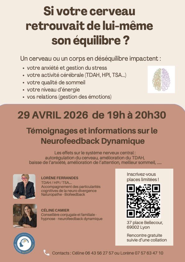 Le neurofeedback dynamique est une méthode innovante qui permet au cerveau de s’autoréguler naturellement. Grâce à un entraînement doux et non invasif, il aide à mieux gérer le stress, améliorer le sommeil, renforcer la concentration et soutenir les capacités cognitives. Adaptée à tous, cette approche favorise le bien-être au quotidien et peut accompagner enfants, adultes et seniors dans leur équilibre émotionnel et mental.